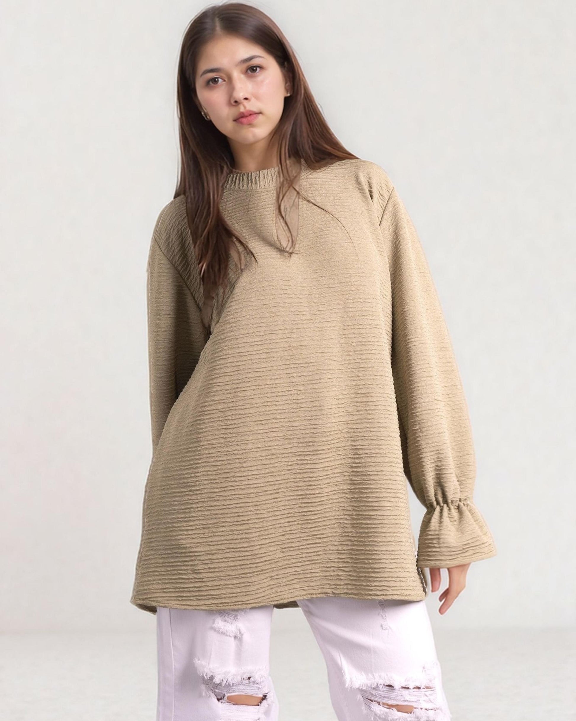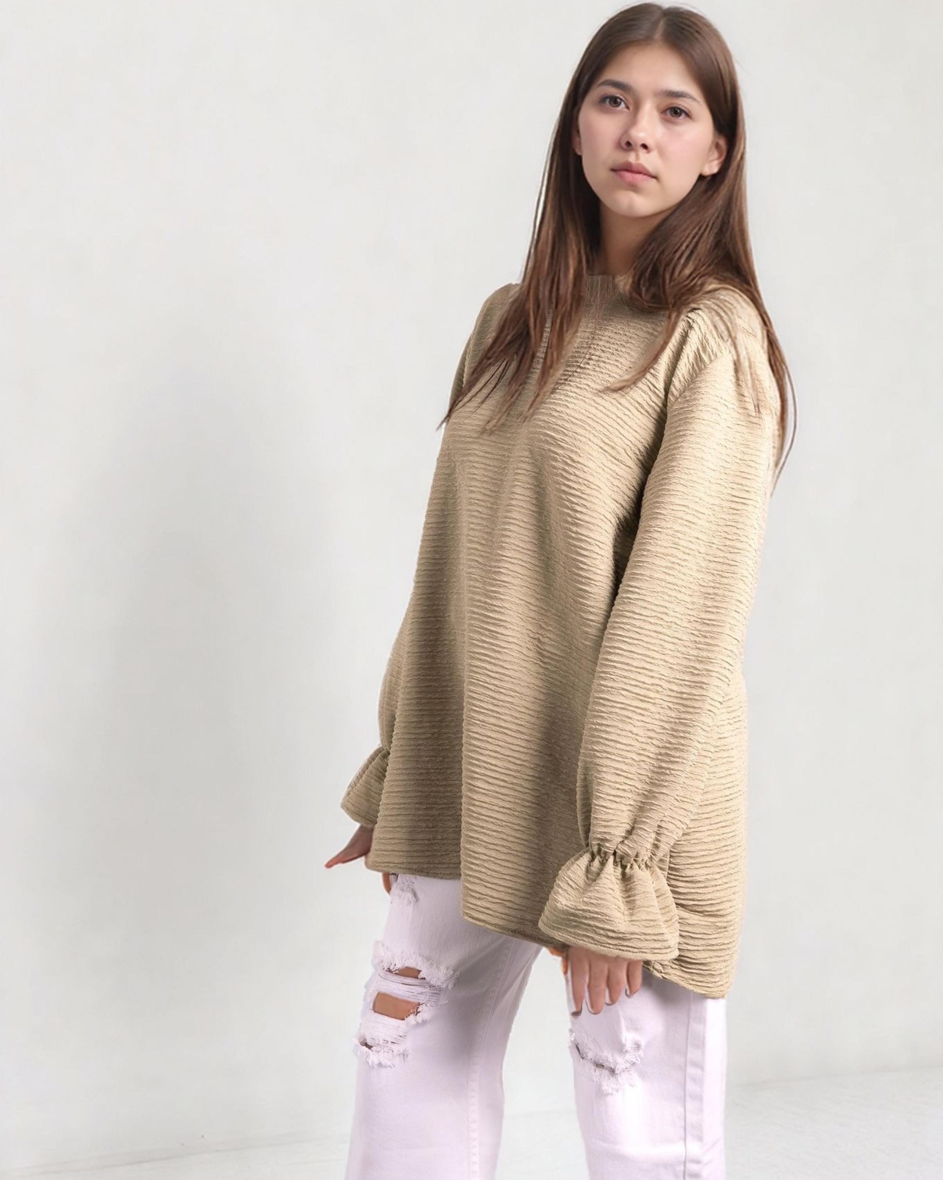 Sleeves: Full-length bishop sleeves with elastic/gathered cuffs
