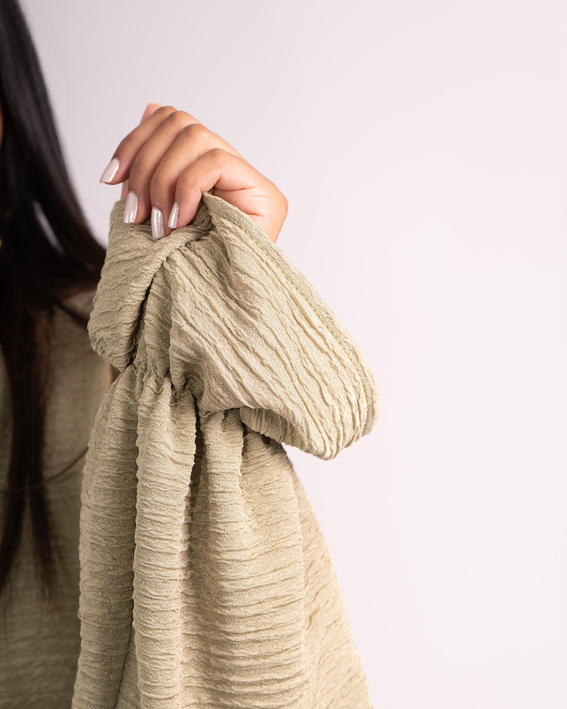 Effortlessly bold and irresistibly chic — the Crinkle Pop Top is a statement piece designed for the modern muse. Featuring a textured crinkle fabric that adds depth and dimension, this top boasts voluminous bishop sleeves and a relaxed silhouette that flatters all body types. The gathered neck detail adds a subtle hint of elegance, while the vibrant chartreuse color brings a burst of energy to any outfit. Whether paired with distressed denim for an edgy daytime look or dressed up for evening outings, this top transitions seamlessly through seasons and moods.