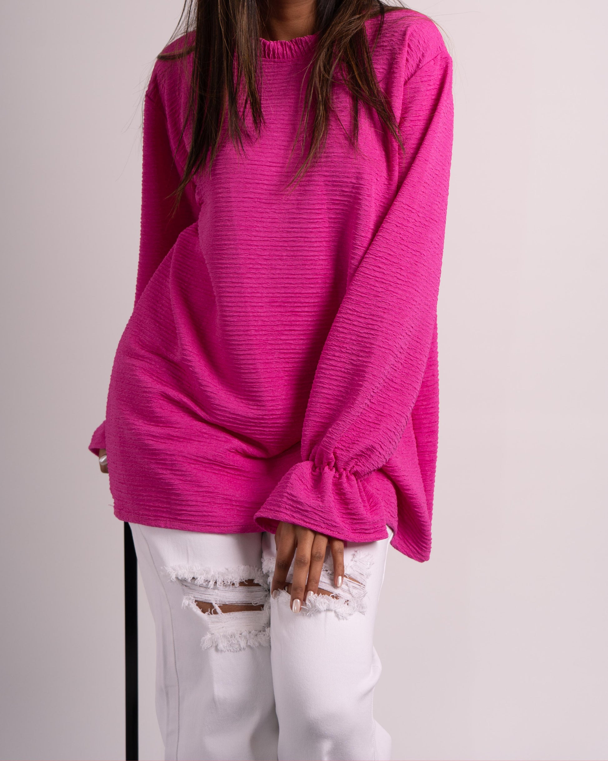 Effortlessly bold and irresistibly chic — the Crinkle Pop Top is a statement piece designed for the modern muse. Featuring a textured crinkle fabric that adds depth and dimension, this top boasts voluminous bishop sleeves and a relaxed silhouette that flatters all body types. The gathered neck detail adds a subtle hint of elegance, while the vibrant chartreuse color brings a burst of energy to any outfit. Whether paired with distressed denim for an edgy daytime look or dressed up for evening outings, this top transitions seamlessly through seasons and moods.
