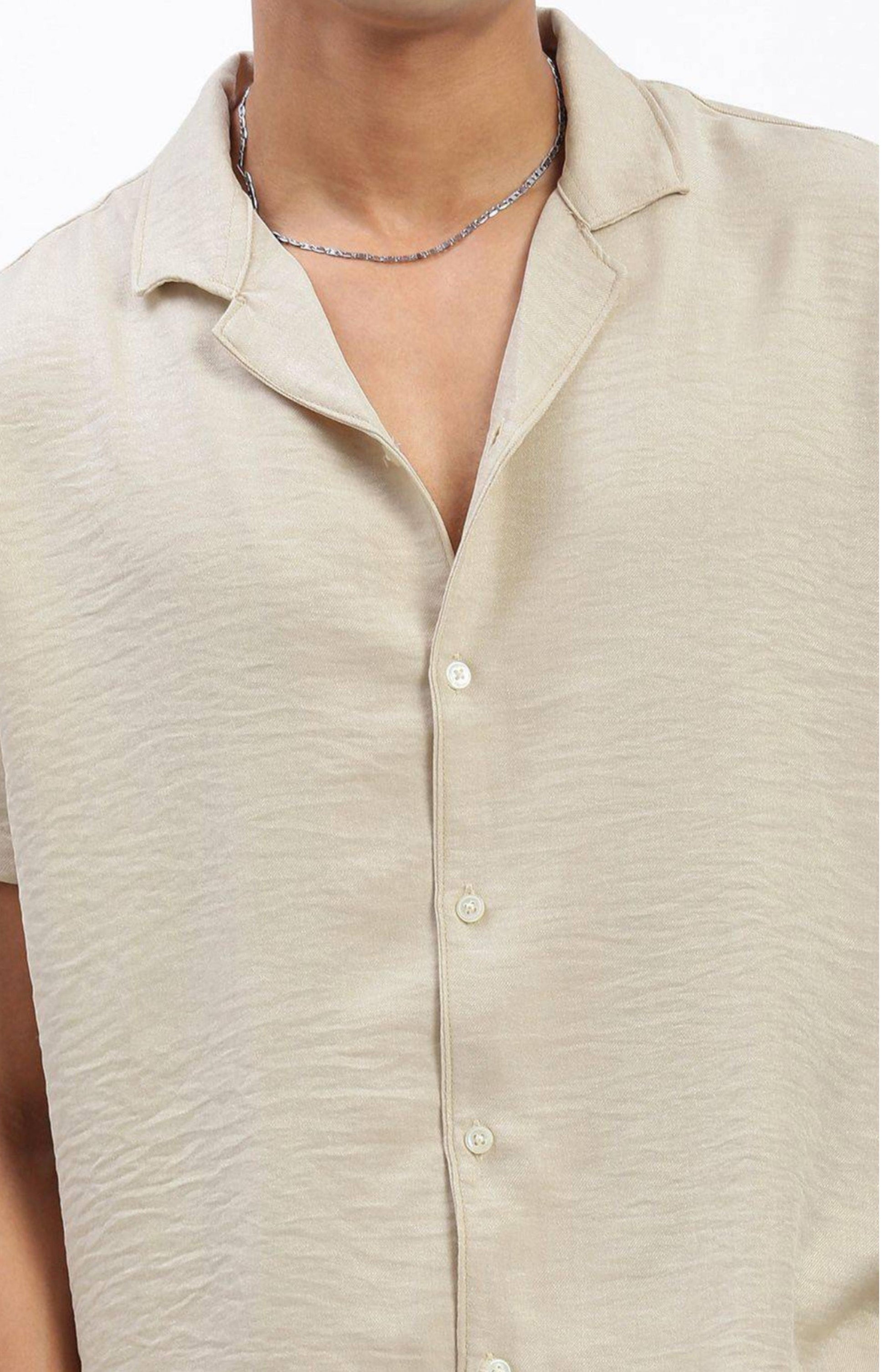 Cuban Collar shirt with Shorts Co-Ords - Beige
