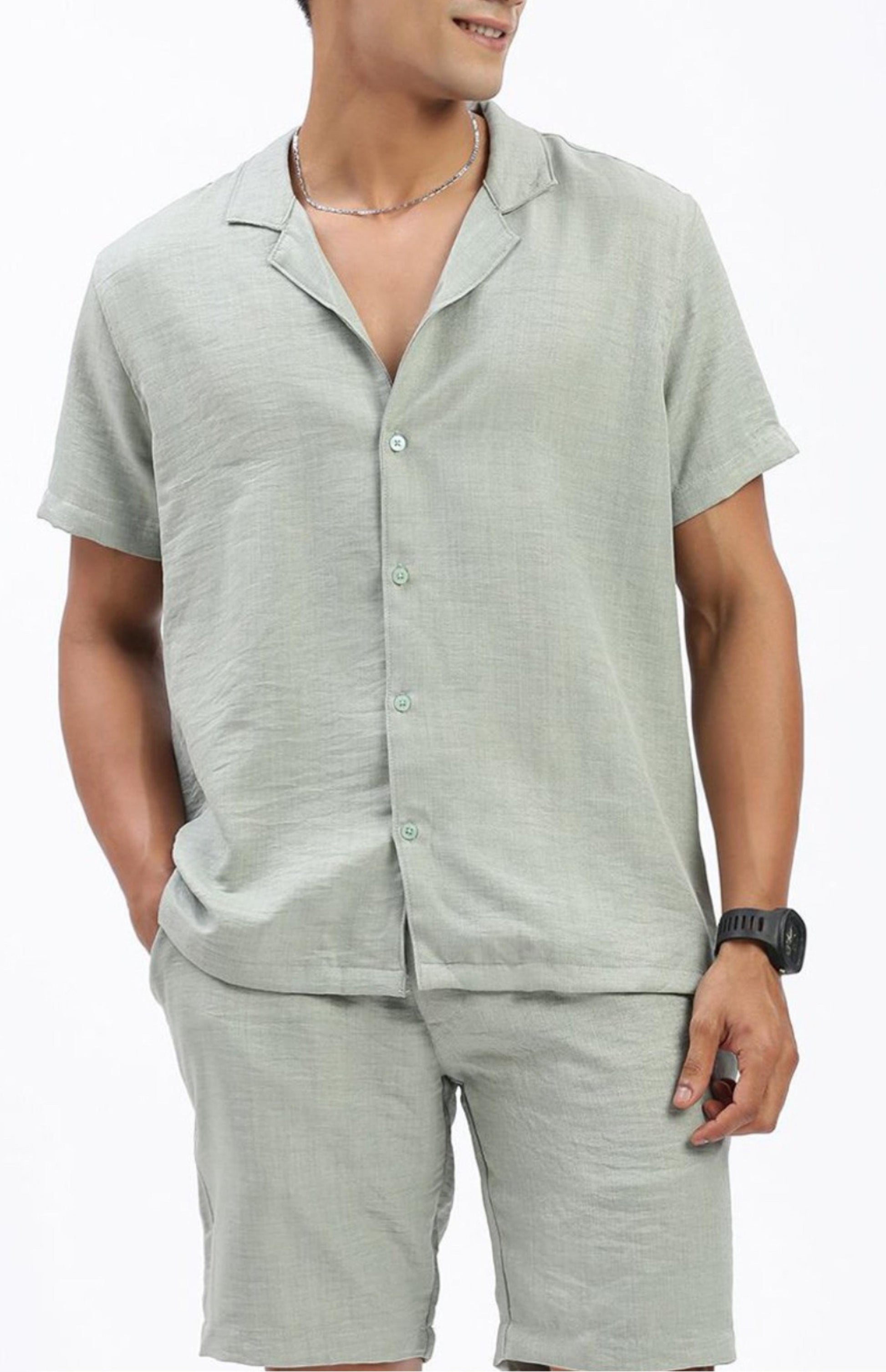 Cuban Collar shirt with Shorts Co-Ords - Sea Gray