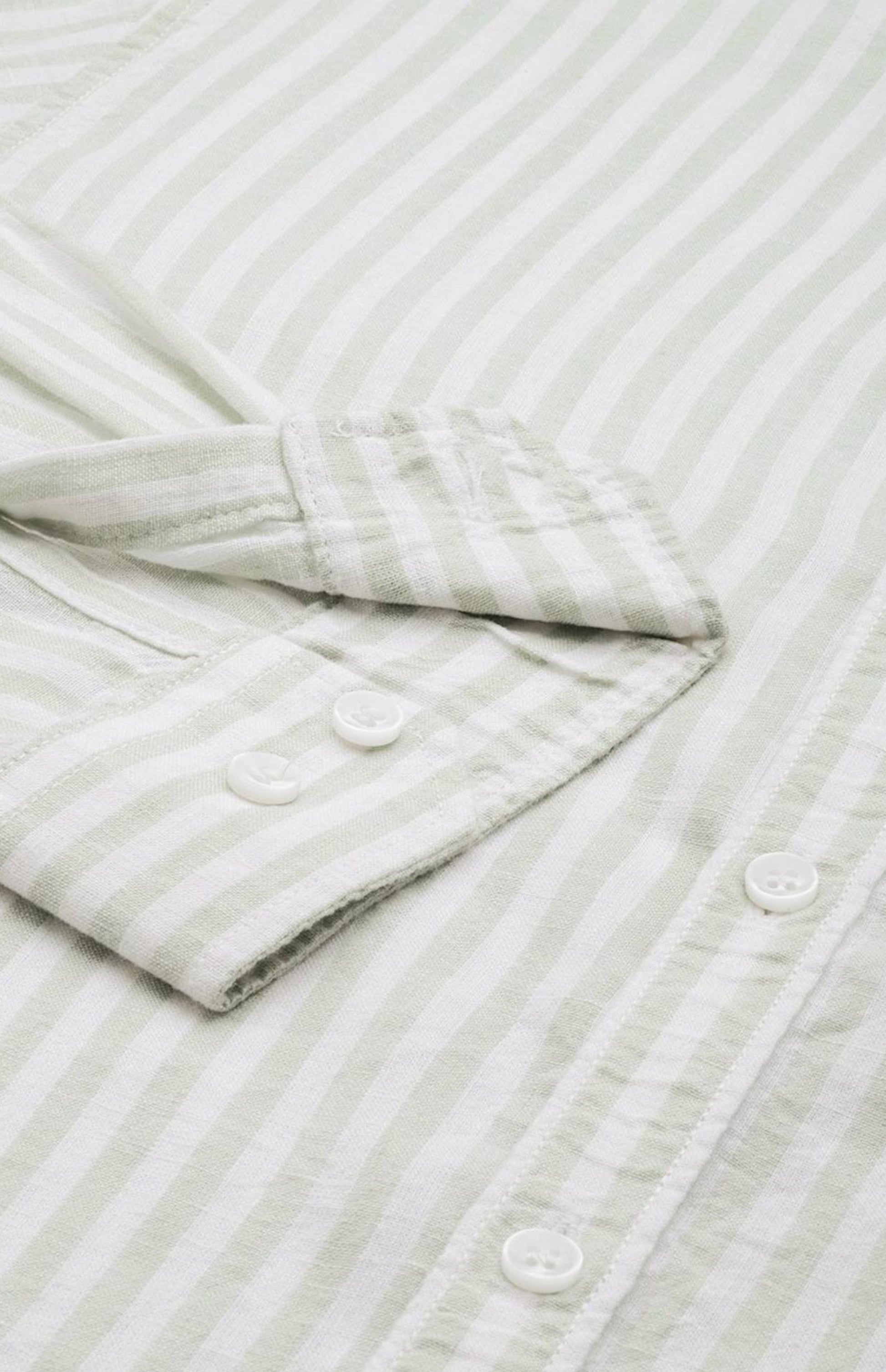 White vertical stripes striped opaque Casual shirt, has a button-down collar, button placket, 1 patch pocket, long regular sleeves, curved hem