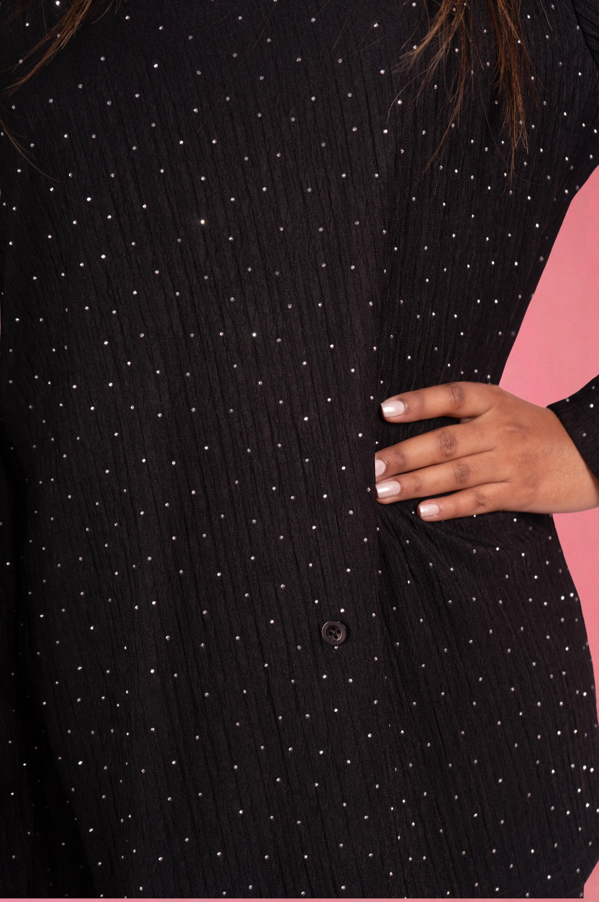 Step into effortless elegance with our Designed with a luxe textured shimmer fabric in a calming beige-gold tone, this relaxed-fit ensemble is a perfect blend of comfort and statement style. The long-sleeve top with wide cuffs pairs seamlessly with flowy wide-leg pants.