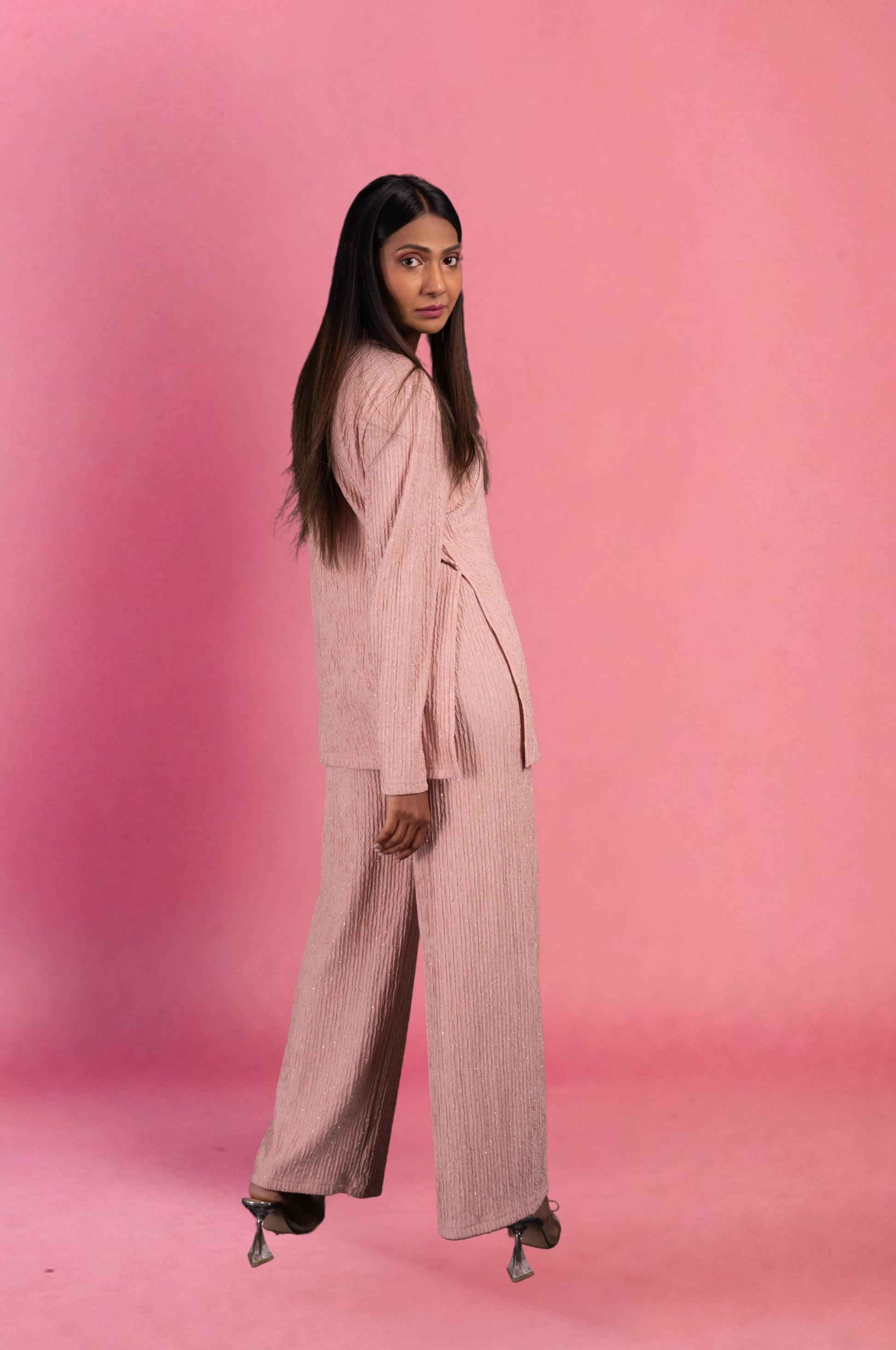 Two Piece shimmer Co-Ord Set-Soft Pink